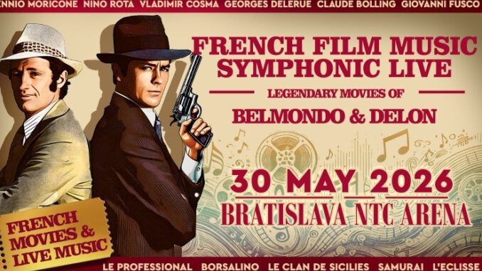 Slovensko zažije 30. mája 2026 večer venovaný dvom ikonám francúzskej kinematografie – Alainovi Delonovi a Jeanovi Paulovi Belmondovi. Do Bratislavy prichádza veľká symfonická produkcia French Films Music Symphonic Live, ktorá predstaví najkrajšie filmové melódie z ich legendárnych diel v podaní medzinárodne oceňovaného orchestra – držiteľa ceny Prima Award.